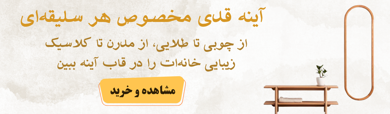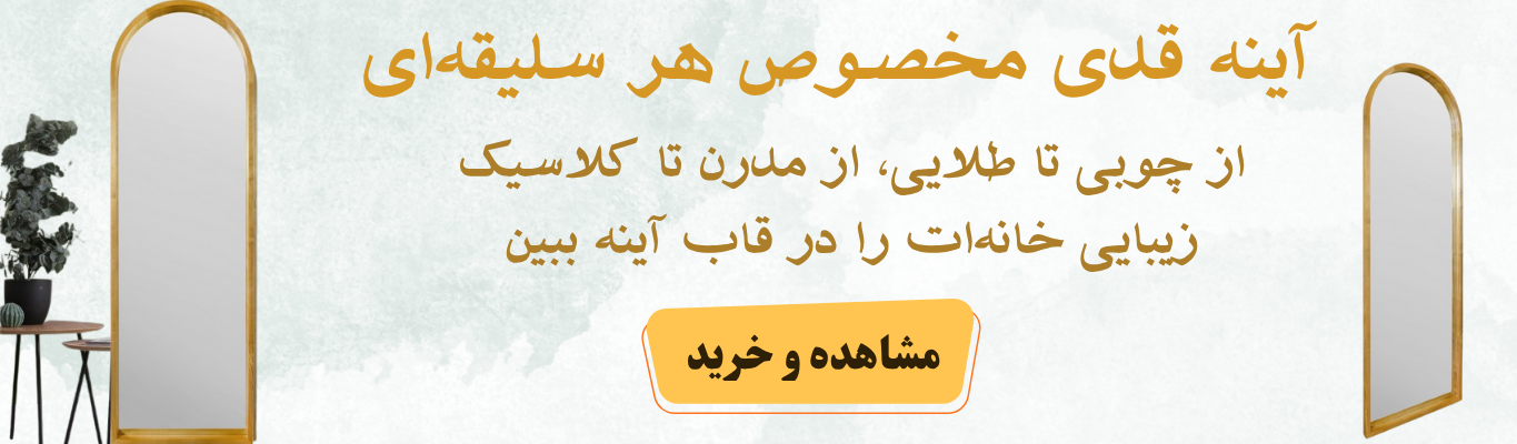 ارسال رایگان برای سفارشهای بالای 5 میلیون تومان! جدیدترین آینههای قدی با قاب چوبی و فلزی، همین حالا ببینید! تخفیف ویژه پاییزی: ۱۰٪ روی تمام آینههای قدی! سفارش شما در تهران ظرف ۲۴ ساعت تحویل داده میشود. آینه من وتو | کیفیت، زیبایی و ارسال سریع در هر سفارش.
