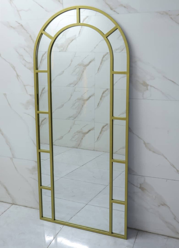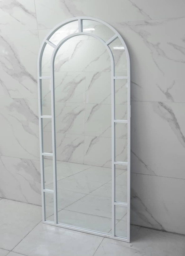 کیفیت ساخت: قاب فلزی با پروفیل دوبل و رنگ کورهای مقاوم، استحکام بالایی دارد و پایه فلزی آن وزن آینه را به خوبی تحمل میکند. آینه نقرهاندود درجه A سوپرکلیر شفافیت و بازتاب نور عالی دارد.